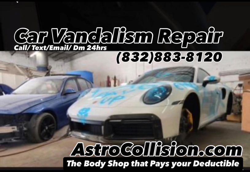 If your car is vandalized in Houston we can Help. Our Experienced technicians know best when it comes to repairing vandalized damaged vehicles. Vandalism damage can be no fun. Call the auto repair shop thats knows best When it comes to car vandalism repair in Houston Tx. Astro Collision; The Body Shop that Pays your Deductible.